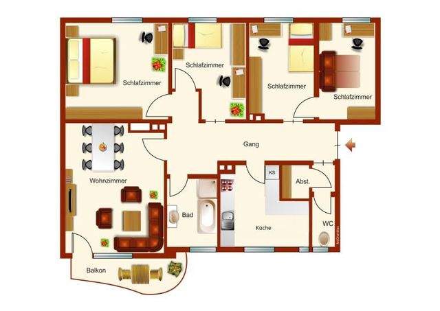 Neben dem Wohnzimmer stehen insgesamt vier weitere Zimmer zur Verfügung, die flexibel als Schlaf-, Kinder-, Arbeits- oder Hobbyzimmer genutzt werden können. Alle verfügen über ausreichend Steckdosen und überzeugen durch ihren nischenfreien Grundriss.