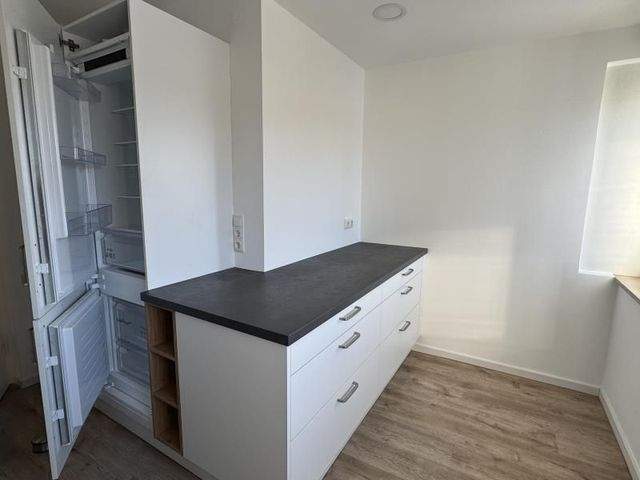 Die Küche ist mit einer maßgefertigten modernen Einbauküche ausgestattet, die über alle gängigen Elektrogeräte verfügt. Eine zusätzliche separate Arbeitsfläche bietet ausreichend Freiraum für kreatives Kochen. Die Einbauküche kann durch eine Ablöse in Höhe von 2.500 EUR vom Vormieter übernommen werden.